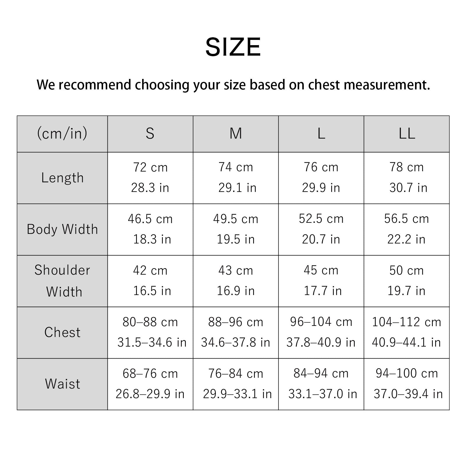 寬度:49.5 厘米/肩寬:43 厘米/長度:74 厘米